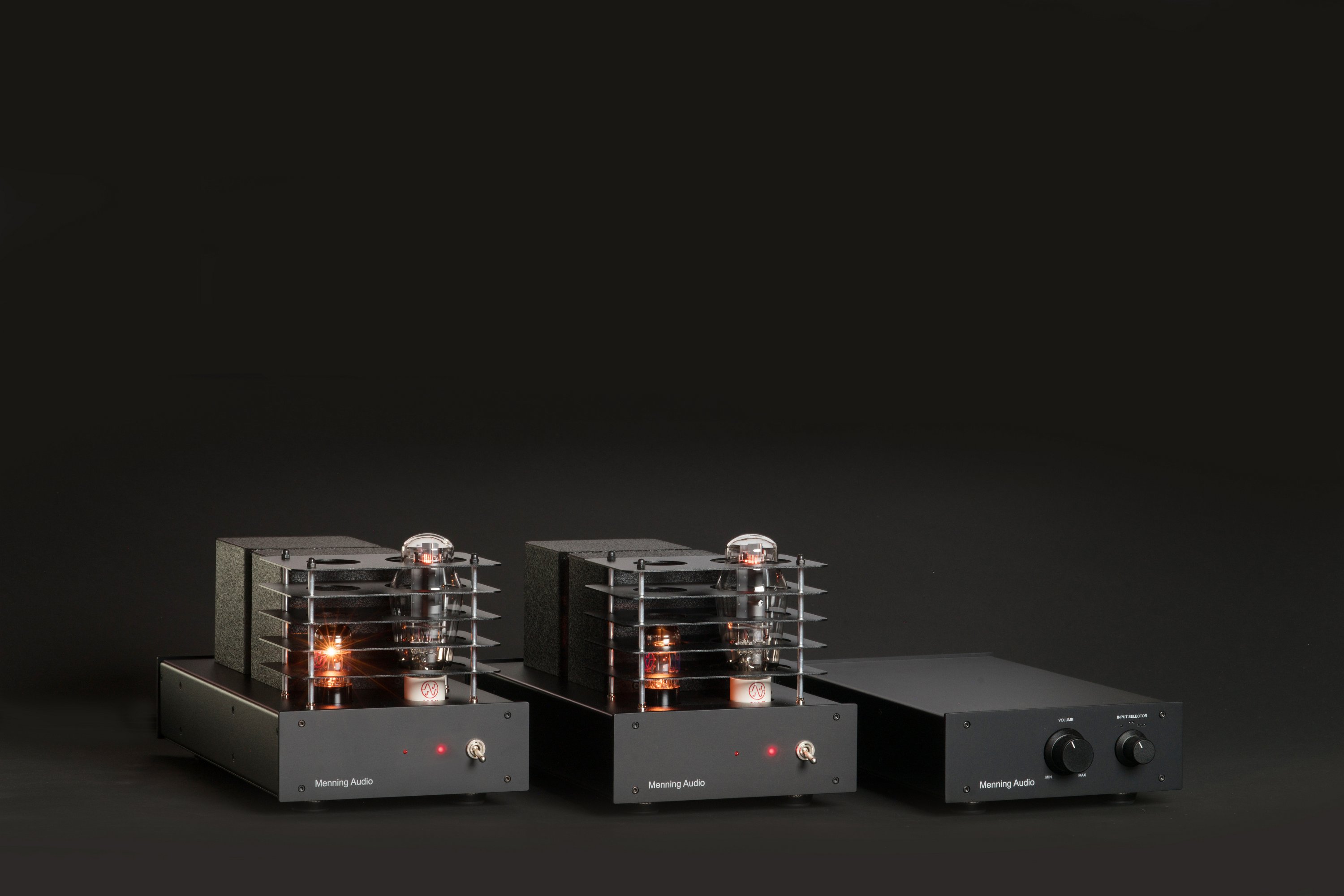 Die Mono’s haben durchaus Tugenden moderner Verstärker – nämlich da rauscht und brummt nichts. Eine clevere Einschaltautomatik lässt die Musik erst dann an die Lautsprecher, wenn die Röhren bereit sind. Und wenn die Verstärker über den satt klickenden Frontschalter wieder ausgeschaltet werden, rauscht es nicht wie bei alten Röhrenradios nach. Laut dem Hersteller Udo Menning könnten die Verstärker auch mit einem optionalen Trigger Eingang ausgestattet werden, denn damit könnte der Nutzer die beiden Boliden mit einem Trigger Impuls anderer Geräte ein- und ausschalten.